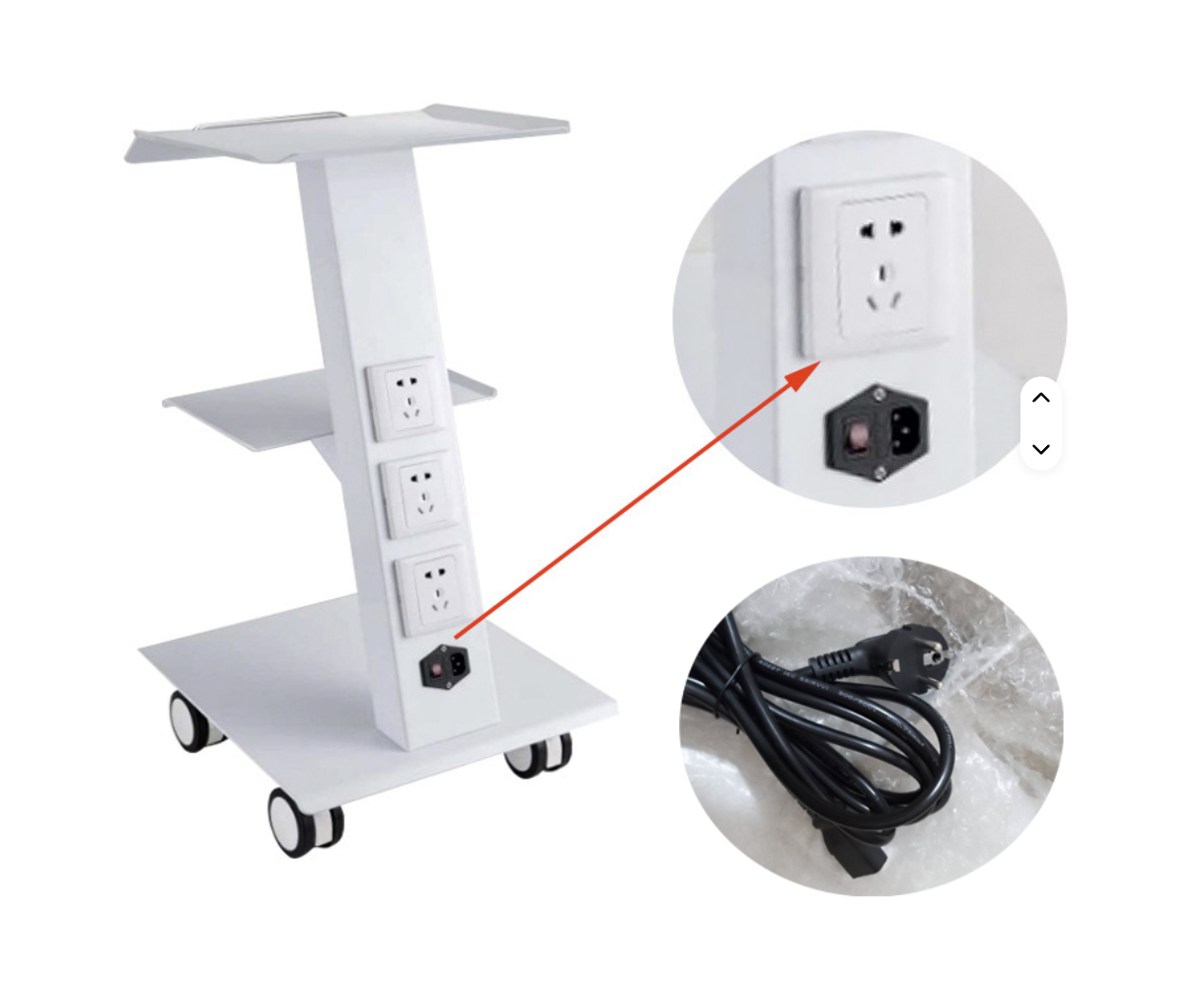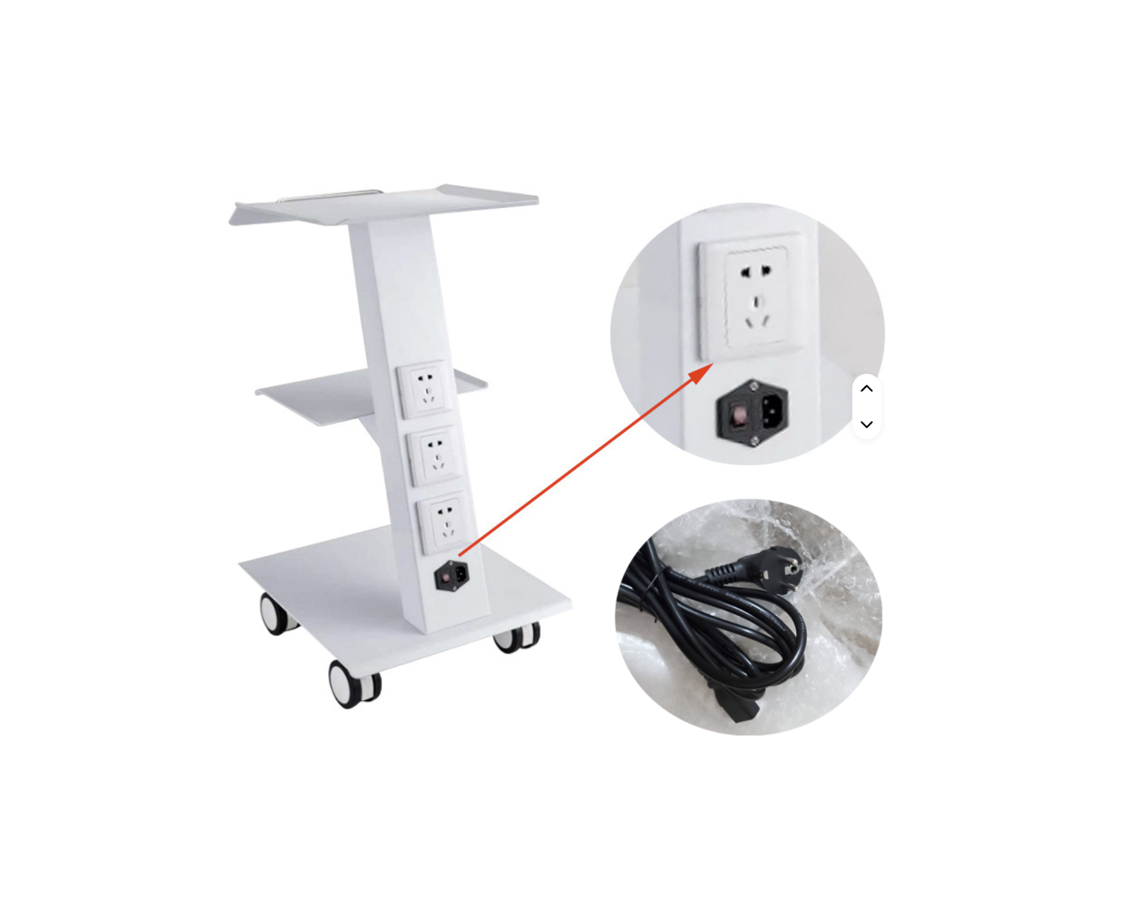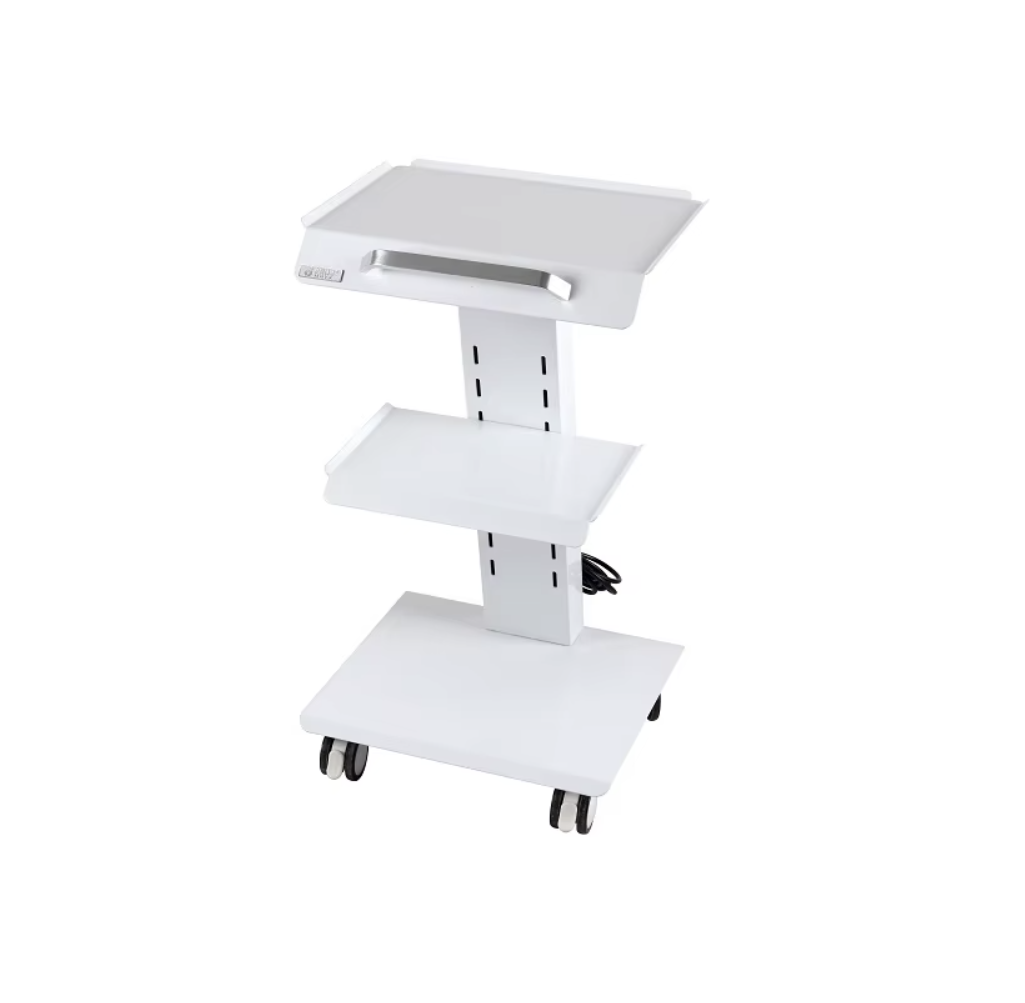 El carro tipo Z de 3 pisos de apoyo para Electrocardiógrafos, Monitores, Equipo de electrocirugía entre otros cuenta además con fuente de alimentación para poder conectar otros equipos, es la ayuda ideal en la clinica o el hospital, versátil para todo uso.