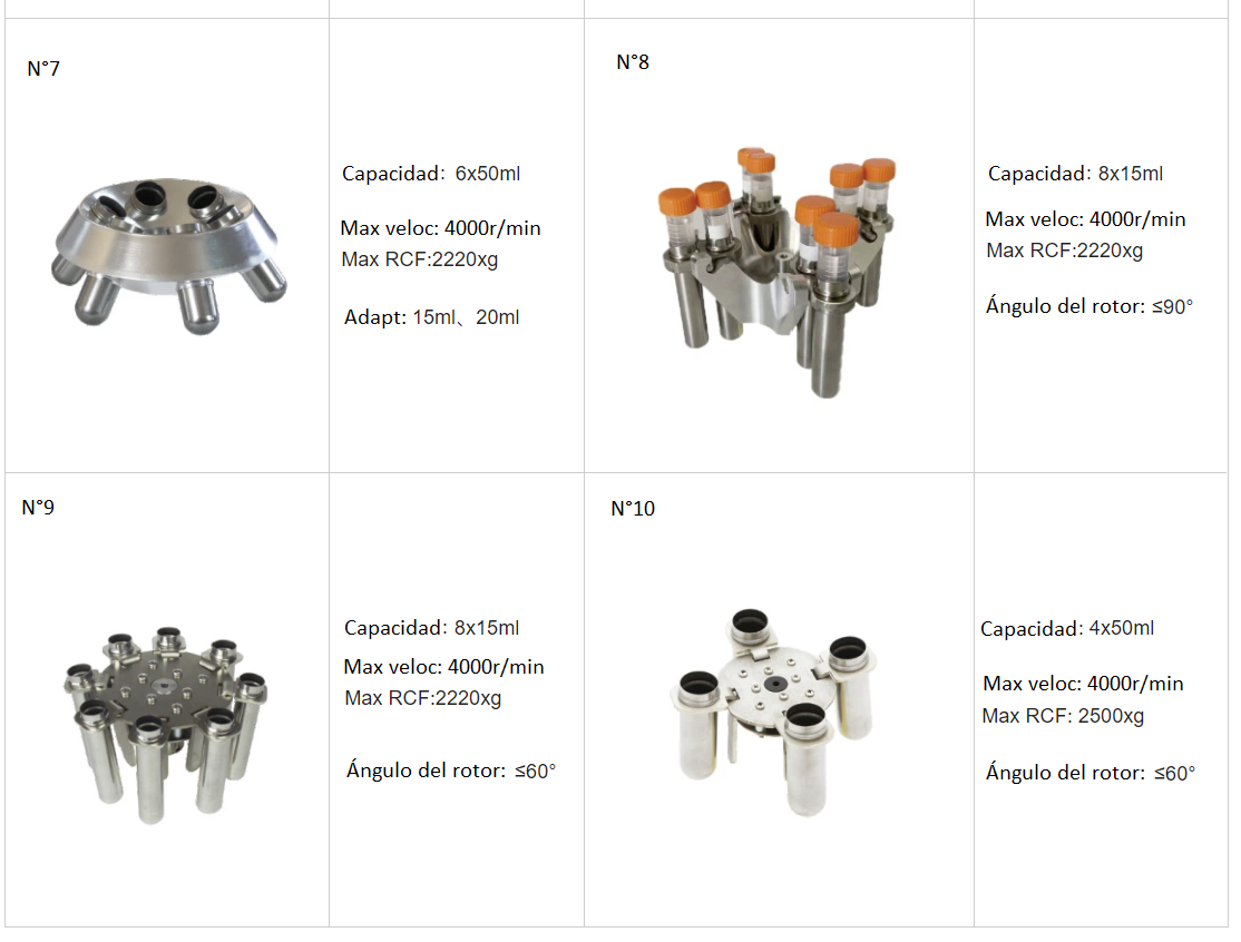 Tipos de Rotores a elección (cliente puede elegir con cual rotor desean su centrífuga vía importación nos debe indicar internamente una vez realice su compra)