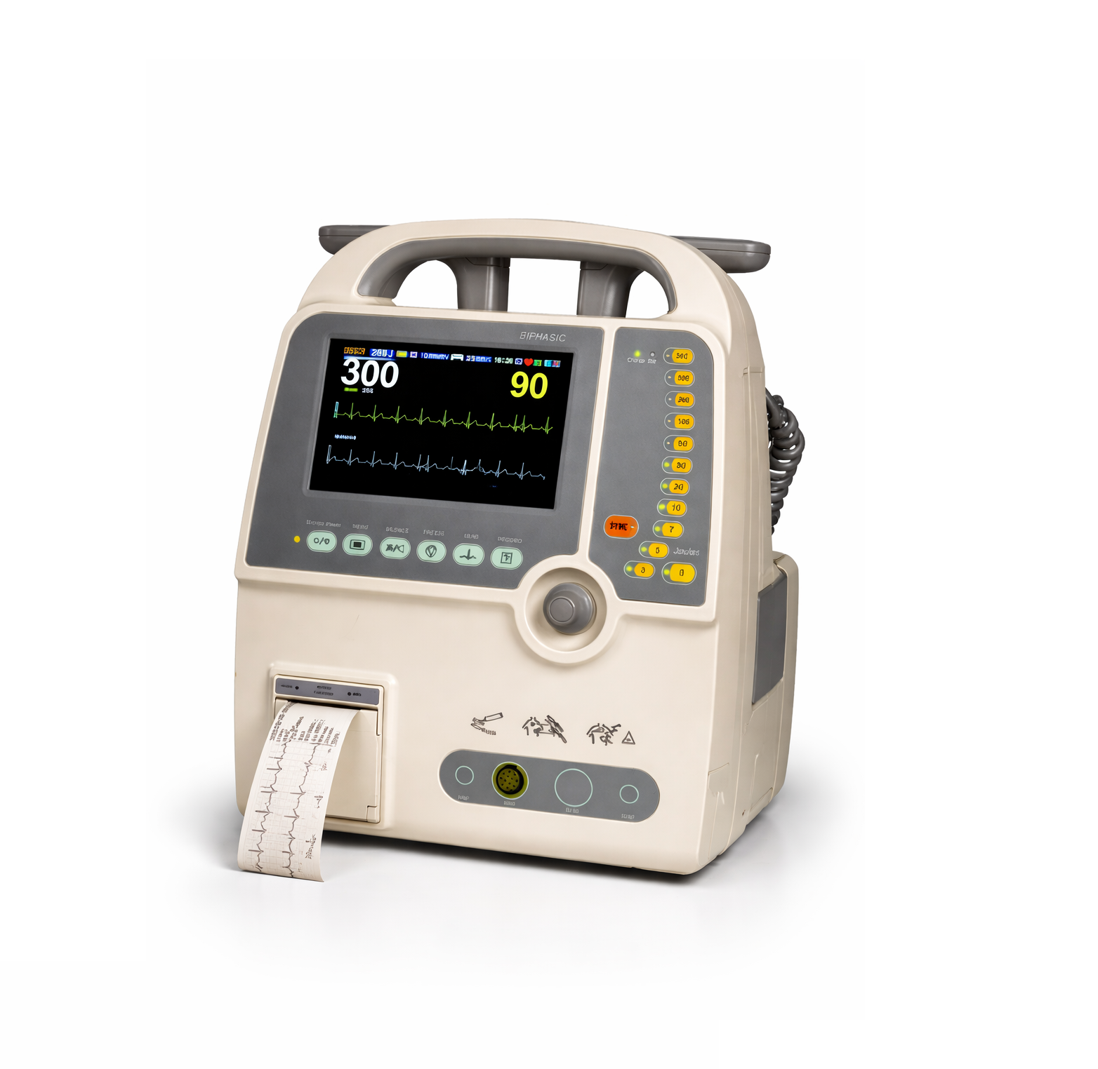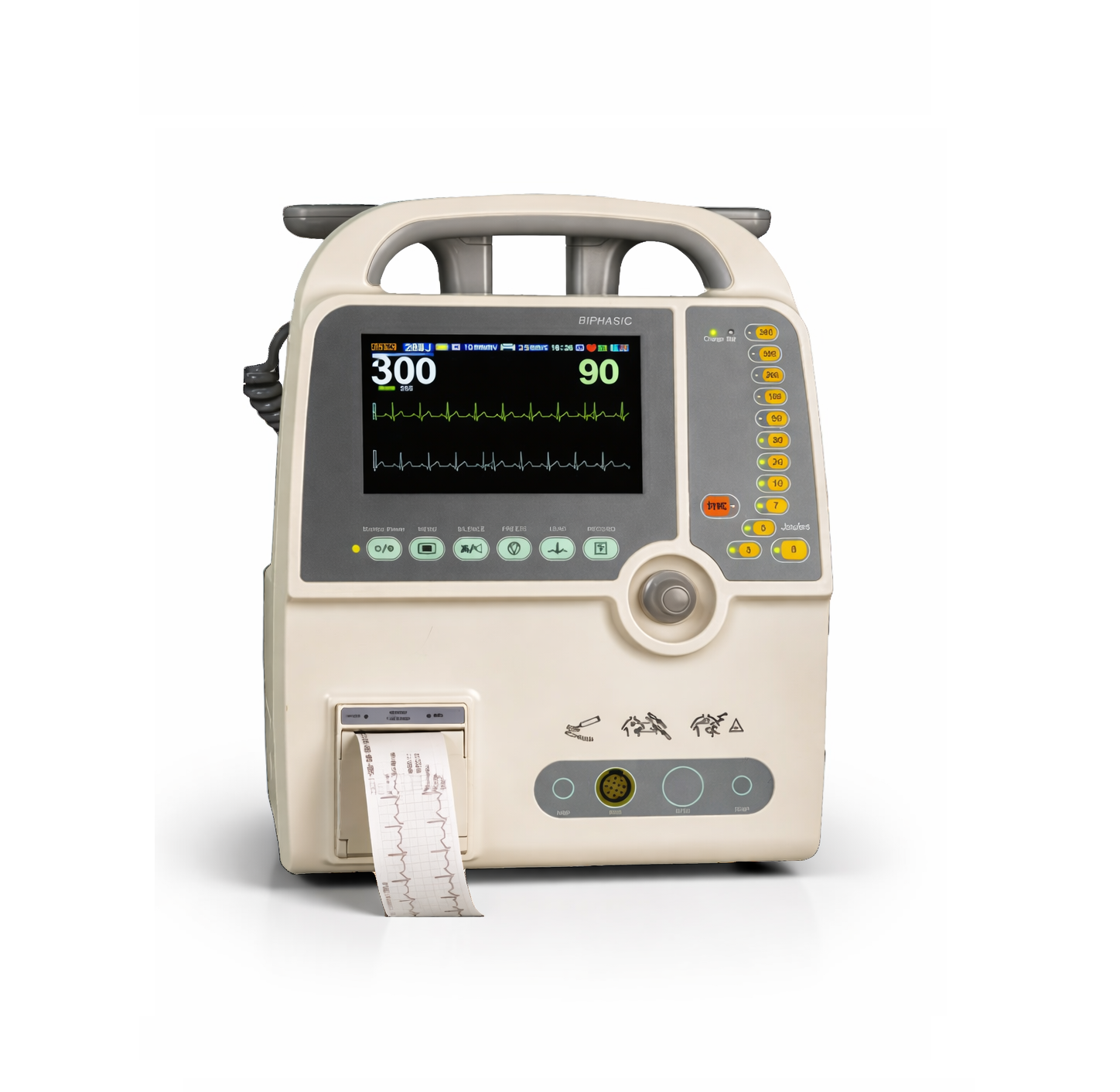 El Desfibrilador con Monitor Meditech B900-D config 2 posee los sgtes parámetros de monitoreo y funciones: ECG, Frecuencia Respiratoria, Saturación de Oxígeno SPO2 , modo DEA y Marcapasos Posee 2, además de un desfibrilador bifásico, es portátil tanto para desfibrilación manual y automática, incluye paletas de descarga de hasta 360 J para la desfibrilación, tanto para pacientes pediátricos como adultos.