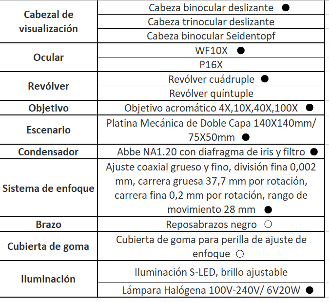 Nota importante: tenemos el microscopio Novel Optics XSZ-107T disponible para entrega inmediata con las especificaciones técnicas marcadas en la tabla más abajo, si cliente solicitara otras de las características descritas se requiere cotización especial, valores pueden diferir, y equipo se puede encargar vía importación con las características opcionales requeridas.